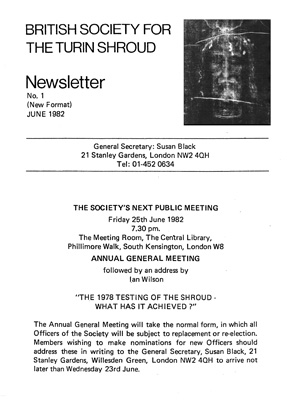 The BSTS issued its first newsletter in 1982 under the editorship of Ian Wilson, a prolific author of historical and religious books and one of the world's foremost Shroud researchers. The newsletter has been in continuous production ever since and publishes two new editions each year. Copies of every issue of the newsletter are archived after 12 months and stored on Shroud.com where they can be viewed. We are grateful to our good friend Barrie Schwortz, founder and editor of Shroud.com, and all those who contributed to making digital versions of all the earlier issues.